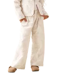 Kids' Floral Embroidered Wide Leg Trousers, Natural