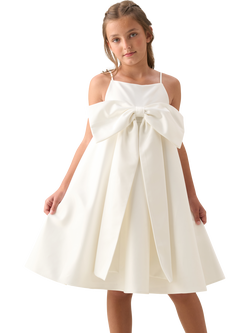 Kids' Pleated Oversized Bow Dress, White