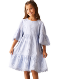 Kids' Cotton Angel Sleeve 3D Flower Dress, Blue