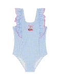 Kids' Embellished Cherry Gingham Swimsuit, Blue