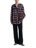 Painted Check Grandad Collar Pure Silk Shirt, Multi
