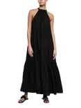 Ibiza Halterneck Linen Maxi Dress, Black