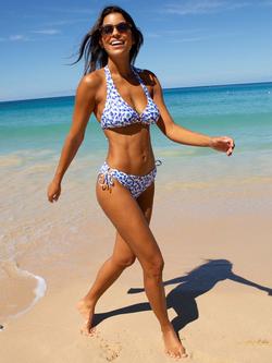 Abstract Tunnel Side Bikini Bottoms, White/Blue