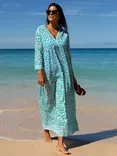 Mykonos Animal Print Pure Organic Cotton Maxi Dress, White/Turquoise