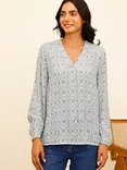 Clea Geometric Floral Top, Green/Lilac
