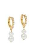 Pearl and Sapphire Huggie Earrings, Gold/White