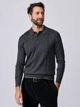 Elm Extra Fine Knit Merino Wool Textured Long Sleeve Polo Shirt, Dark Charcoal