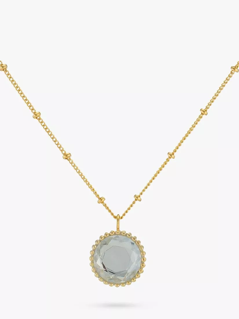 Auree Barcelona Personalised Birthstone Gold Vermeil Beaded Pendant Necklace, Rose Quartz - October