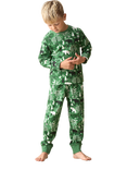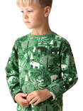 Angel & Rocket Kids' Cotton Rich Scandi Print Pyjamas, Green