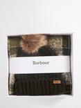 Barbour Saltburn Faux Fur Pom-Pom Beanie Hat & Scarf Gift Set, Pearl