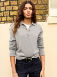 Clementine Wool Rich Polo Knit, Grey Marl