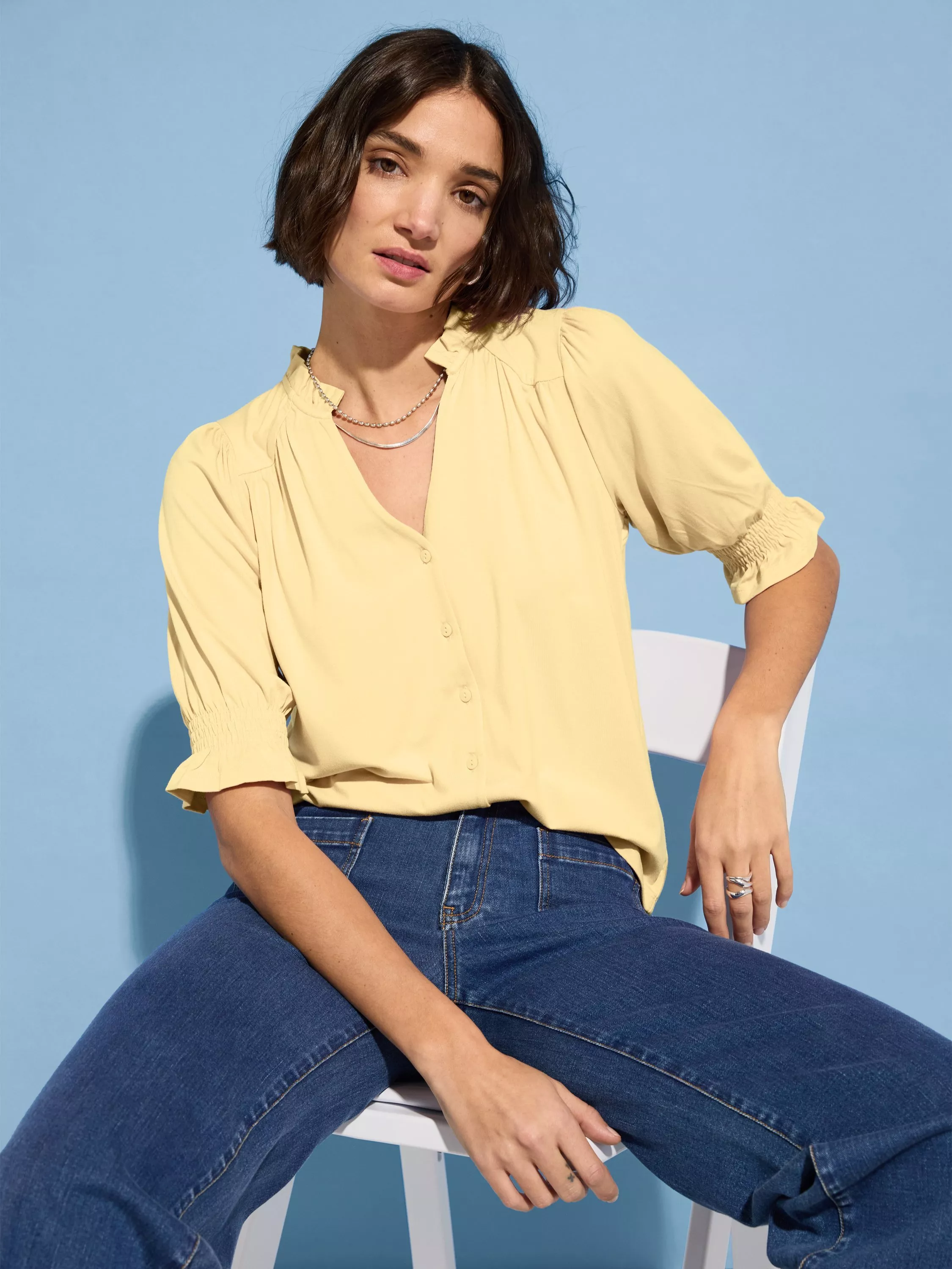 Baukjen Noa Ruffle Collar Blouse, Classic Navy