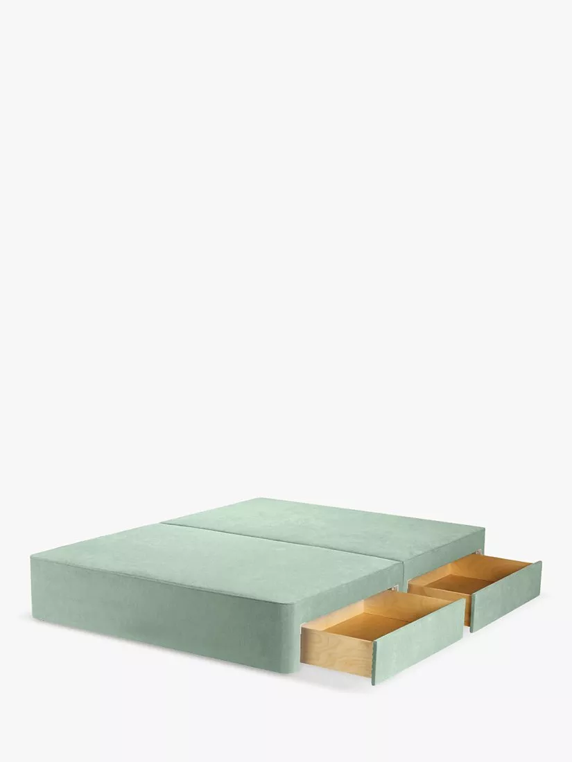 John Lewis Pocket Sprung 4 Drawer Storage Divan Base, Super King Size, Cotton Effect Beige, Soft Touch Duck Egg