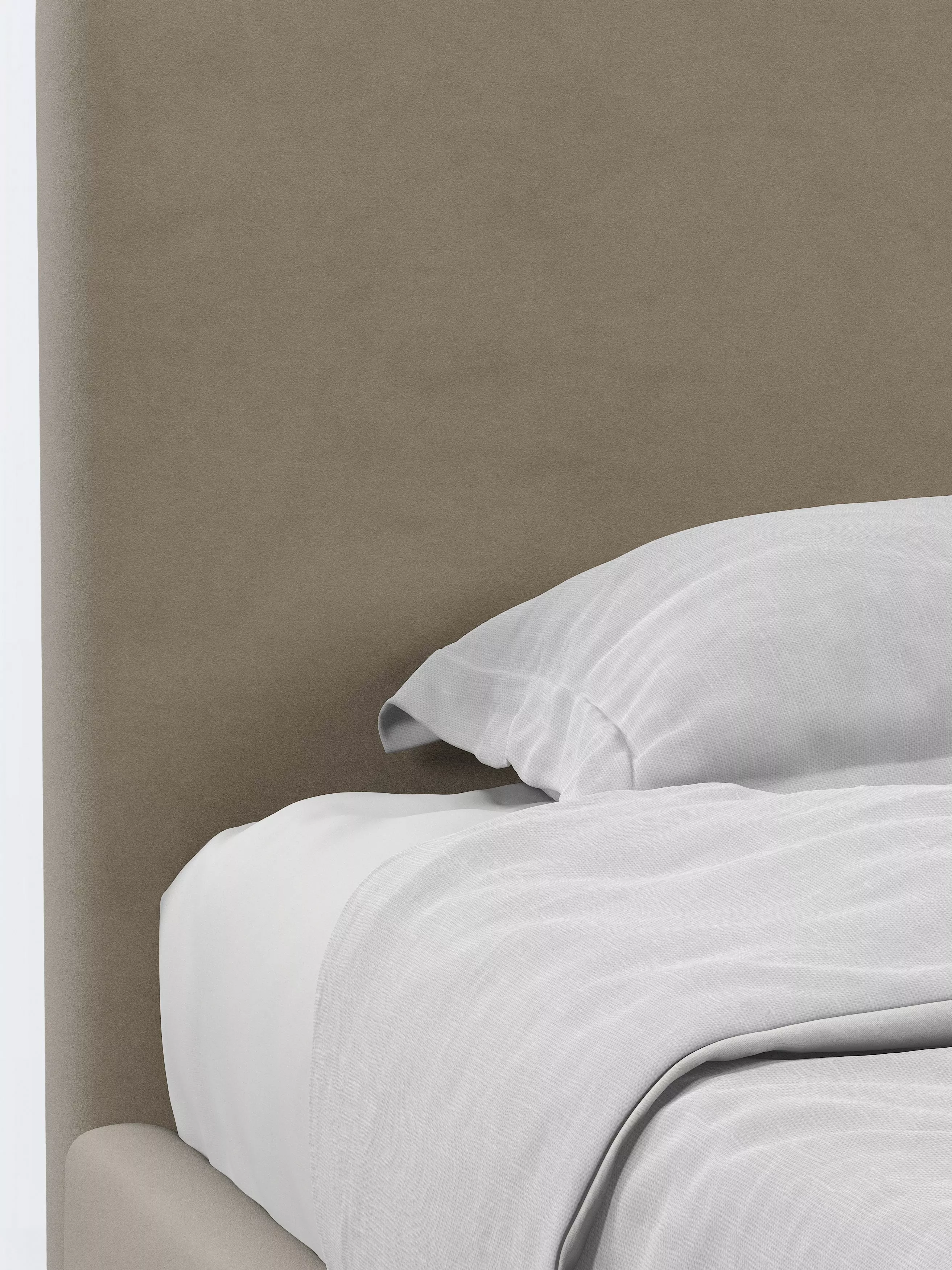 John Lewis Emily Upholstered Bed Frame, Double - view 2, Soft Twill Smoke