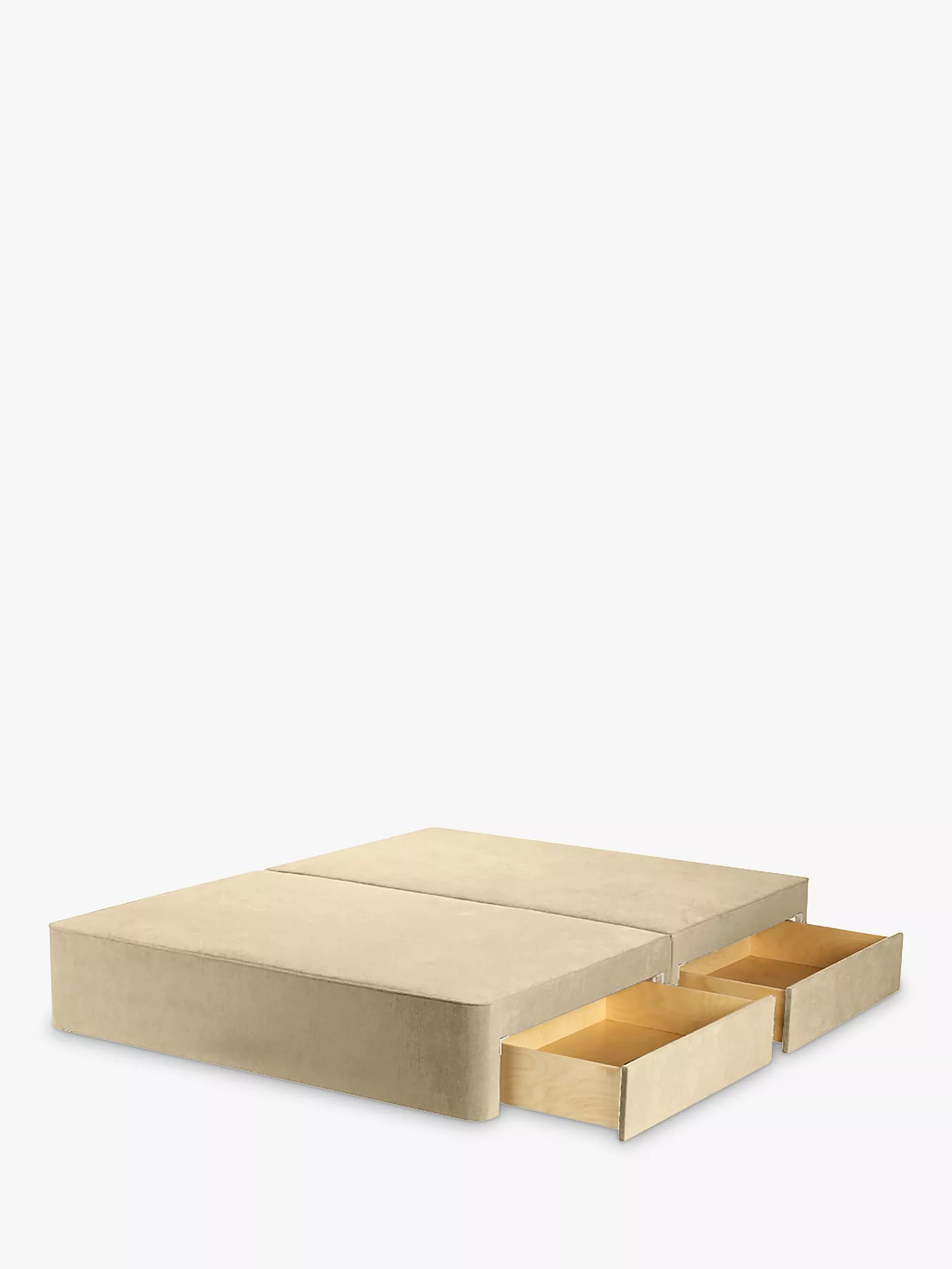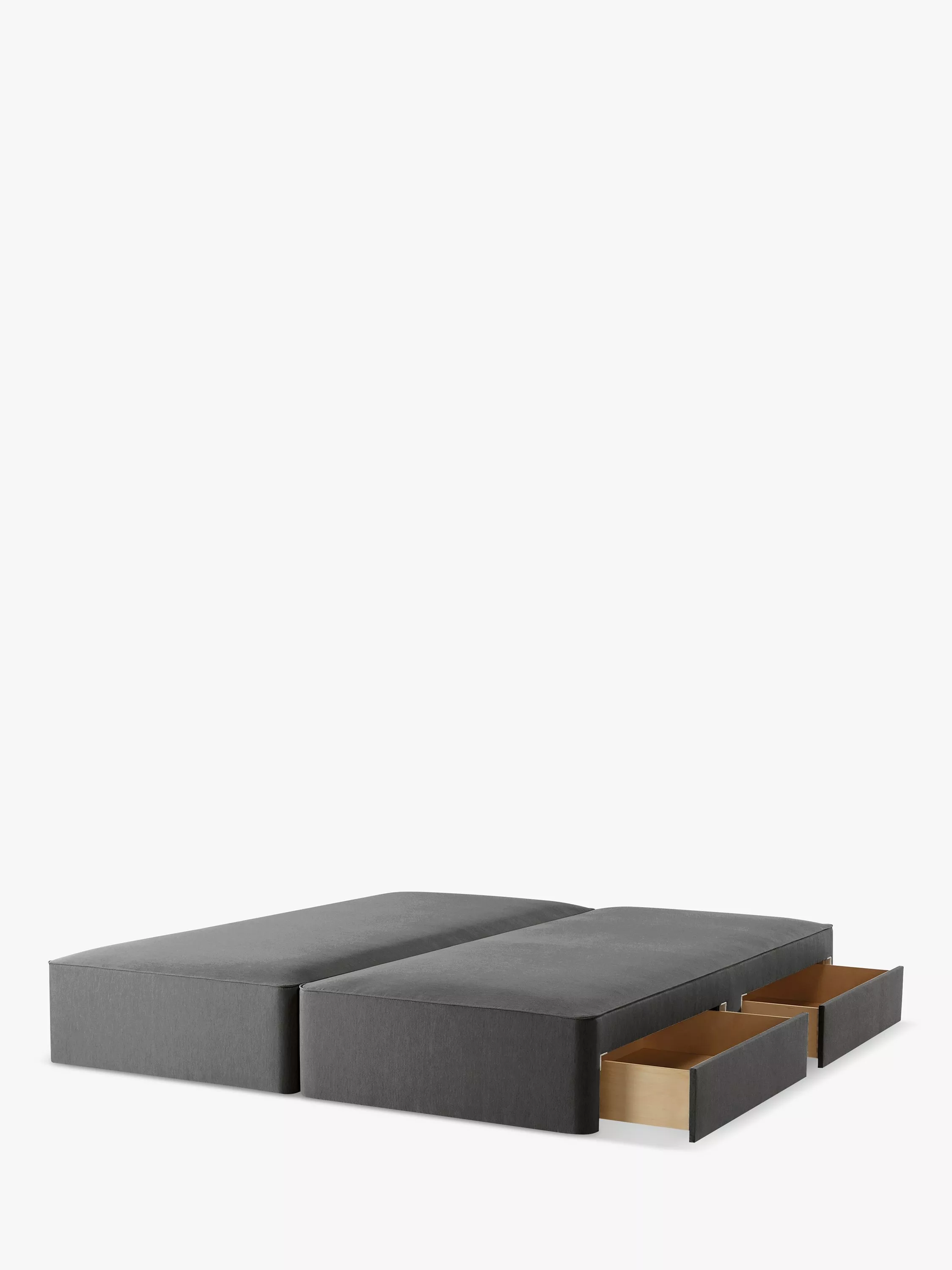 John LewisPocket Sprung 4 Drawer Storage Divan Base, King Size£1,159.00 – £1,259.00Payment plans availableSoft Touch Chenille Charcoal is availableSoft Touch Chenille Duck Egg is availableSoft Touch Chenille Grey is availableSoft Touch Chenille Mole is availableCotton Effect Pink is availableCotton Effect Grey is availableBrushed Tweed Charcoal is availableBrushed Tweed Grey is availableRelaxed Linen Putty is availableRelaxed Linen Dark Nordic Blue is availableDeep Velvet Heather is availableDeep Velvet Royal Blue is availableDeep Velvet Teal is availableDeep Velvet Steel is availableDeep Velvet Petrol is availableDeep Velvet Biscuit is availableDeep Velvet Eau De Nil is availableRelaxed Linen Duck Egg is available+ More colours available