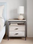 John Lewis Industrial Mango Wood 2 Drawer Bedside Table, White Wash