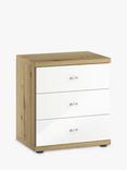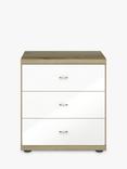 John Lewis Elstra 3 Drawer Glass Front Bedside Table, White Glass/Bianco Oak