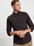 Cotton Blend Regular Fit Cable Knit Polo Shirt, Dark Brown