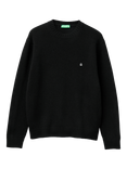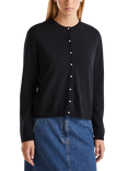 Benetton Pure Wool Crew Neck Cardigan, Black