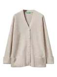 V-Neck Relaxed Fit Wool Blend Cardigan, Beige