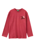 Kids' Cotton Long Sleeved Graphic Print T-Shirt, Red