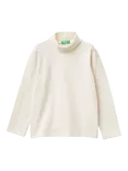 Benetton Rib Knit Mock Turtleneck Wool Blend Vest, White