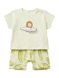 Benetton Kids' Cotton Fleece Leaf Print Shorts