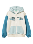 Benetton Kids' Cotton Blend Colour Block Hoodie, Blue/Multi