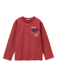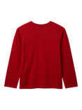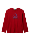 Benetton Kids' Pure Cotton Long Sleeved Logo T-Shirt, Red