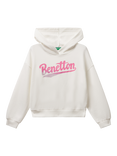Benetton Kids' Cotton Relaxed Logo Print Hoodie, White