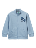 Kids' Cotton High Neck Zipped Sweatshirt, Blue