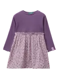 Email when available, Benetton Kids' Cotton Blend Long Sleeved A-Line Dress, PurpleBenetton Kids' Cotton Blend Long Sleeved A-Line Dress, Purple£25.95