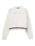 Kids' Knitted Long Sleeved Polo Jumper, White