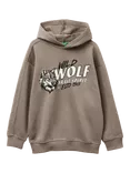 Kids' Cotton Blend Wolf Print Hoodie, Brown