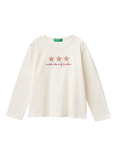 Benetton Kids' Cotton Long Sleeved Sequin Stars T-Shirt