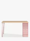 Bisley MultiDesk Oak Veneer Home Office Desk with 6 Drawers, 140cm, Pink/Oak