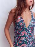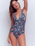 Mykonos Floral Deep V-Neck Swimsuit, Blue/Multi