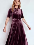 Kate Velvet Puff Sleeve Button Neck Midi Shirt Dress
