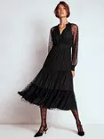 Lucille Tulle Long Sleeved Midi Dress, Black