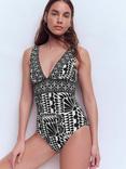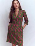 Boden Ivy Smocked Animal Print Midi Dress containing LENZING™ ECOVERO™ Viscose, Ocean/Multi