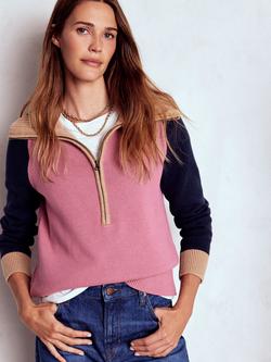 Pure Cotton Half Zip Jumper, Pink Heather/Navy