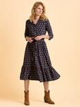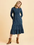 Cay Cotton Abstract Three-Quarter Sleeve Round Neck Midi Dress