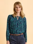 Nanda Leaves Print Long Sleeve Tie-Neck Blouse
