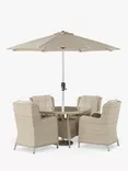 Bramblecrest Chedworth 4-Seater Garden Round Dining Table & Chairs Set with Parasol, Sandstone
