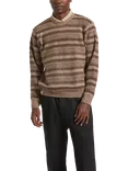 Midnight Textured Crew Neck Jumper, Multi Neutral Stripe