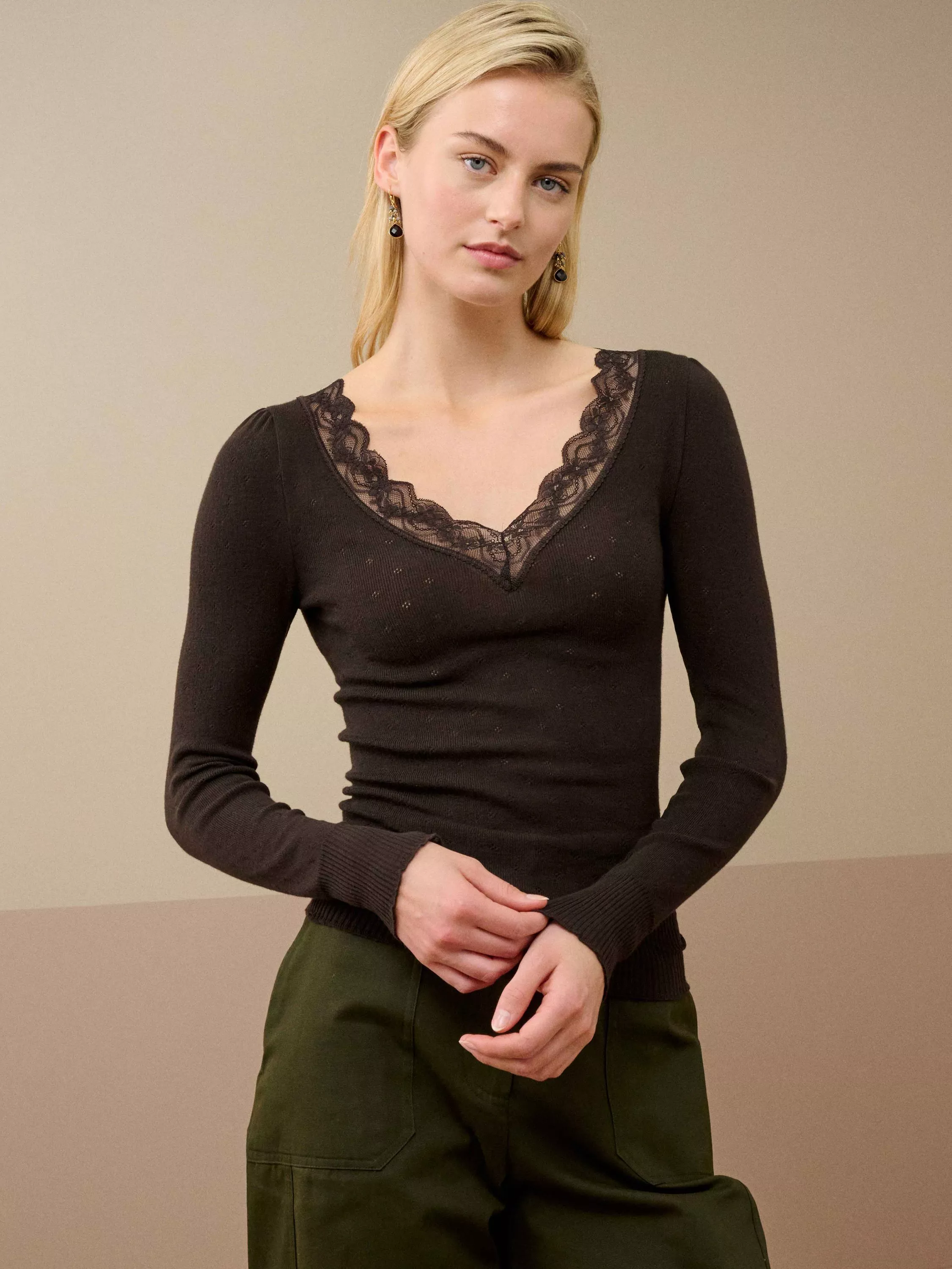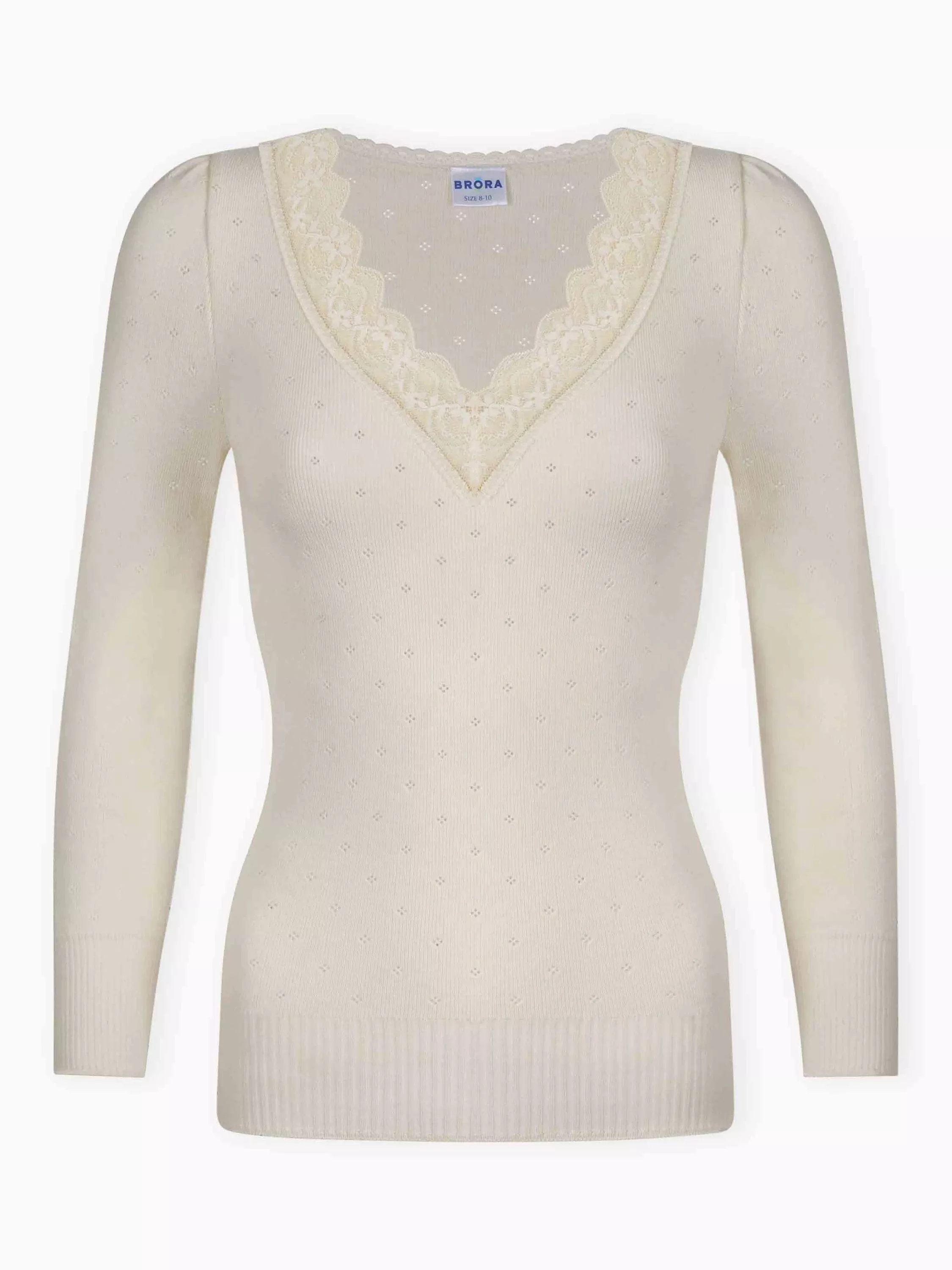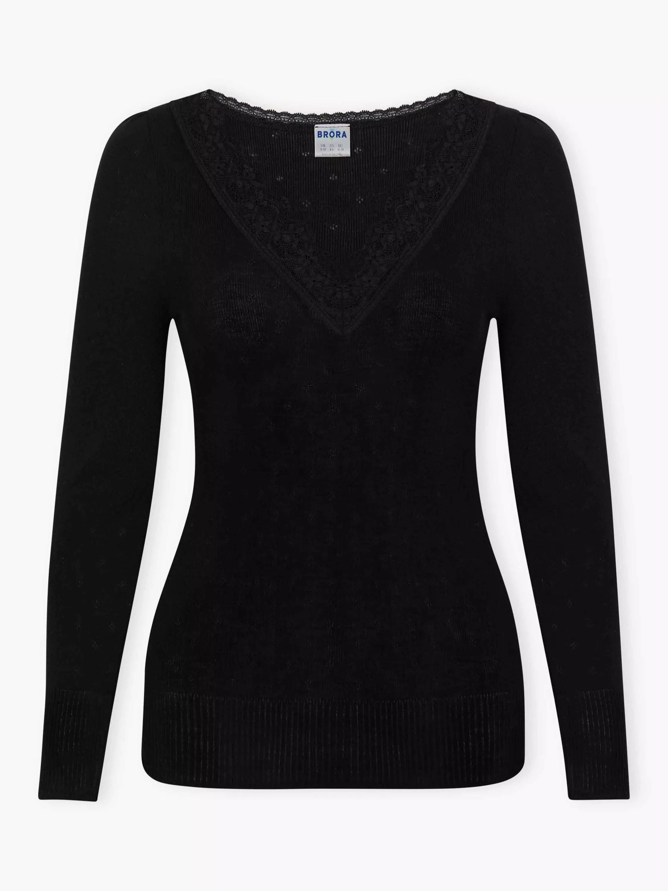 BroraLace Trim V-Neck Top£75.00Black is availableIvory is availableBitter Chocolate is unavailable+ More colours availableExclusive to John Lewis and Brora