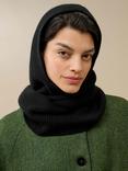 Brora Pure Cashmere Ribbed Hybrid Hooded Scarf, Black