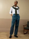 Brora Cotton Canvas Barrel Leg Trousers, Petrol