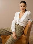 Brora Herringbone Pure Wool Trousers, Chocolate/Ash