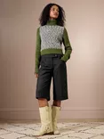 Brora Houndstooth Flared Pure Wool Trousers, Biscuit